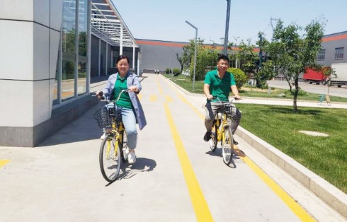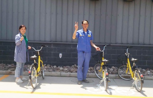 員工們騎上“小黃車”
